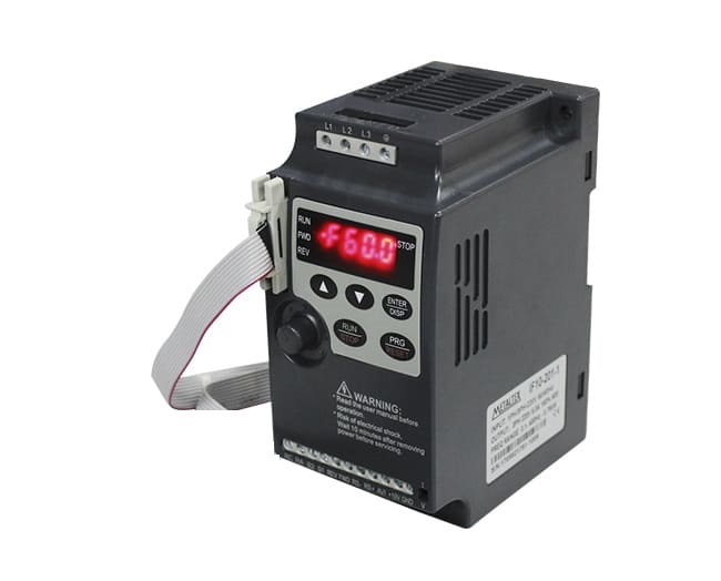 inversor de frequência escalar compacto. Montagem em trilho DIN até 3HP. Controle escalar V/F até 400Hz. Comunicação Modbus-RTU RS485 incorporada. Dispõe de teclado remoto adicional. Modelos de 1 a 5HP em 220V monofásico e 1 a 10HP em 380V trifásico.